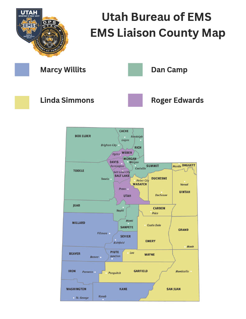 An EMS Liaison is a regionally assigned, state-supported emergency medical professional dedicated to strengthening emergency medical services in Utah’s counties. These liaisons serve as critical connectors between the Utah Bureau of Emergency Medical Services and local EMS providers, officials, and health departments. Residing within the communities they serve, each liaison is a licensed paramedic or advanced EMT equipped to deliver hands-on support—from providing direct patient care and staffing ambulances to offering training, technical assistance, and guidance on accessing state and federal grant funding. With specialized vehicles and equipment, they ensure that EMS agencies are not only supported but empowered to deliver high-quality, life-saving care across all of the state’s regions.